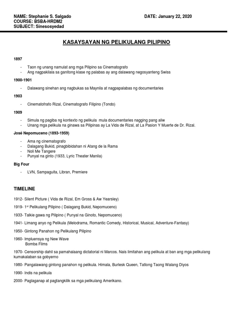 Kasaysayan Ng Pelikulang Pilipino Fil3 22jan2020 Philippines Cinema