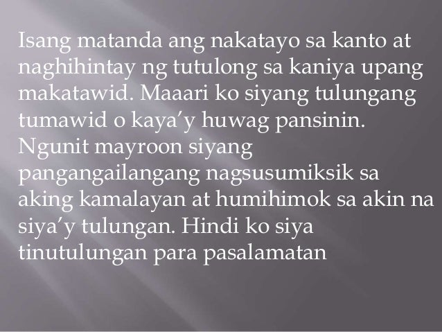 4The Agrava Board investigated the assassination of Benigno Aquino. Bpaninirang puri sa iyong kapwa. Dapat ba ay palagi kang sumang-ayon sa opinyon ng iyong kapwa.