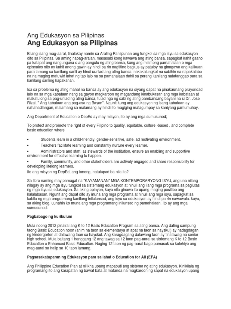 Ang Sistema Ng Edukasyon Sa Pilipinas Docx