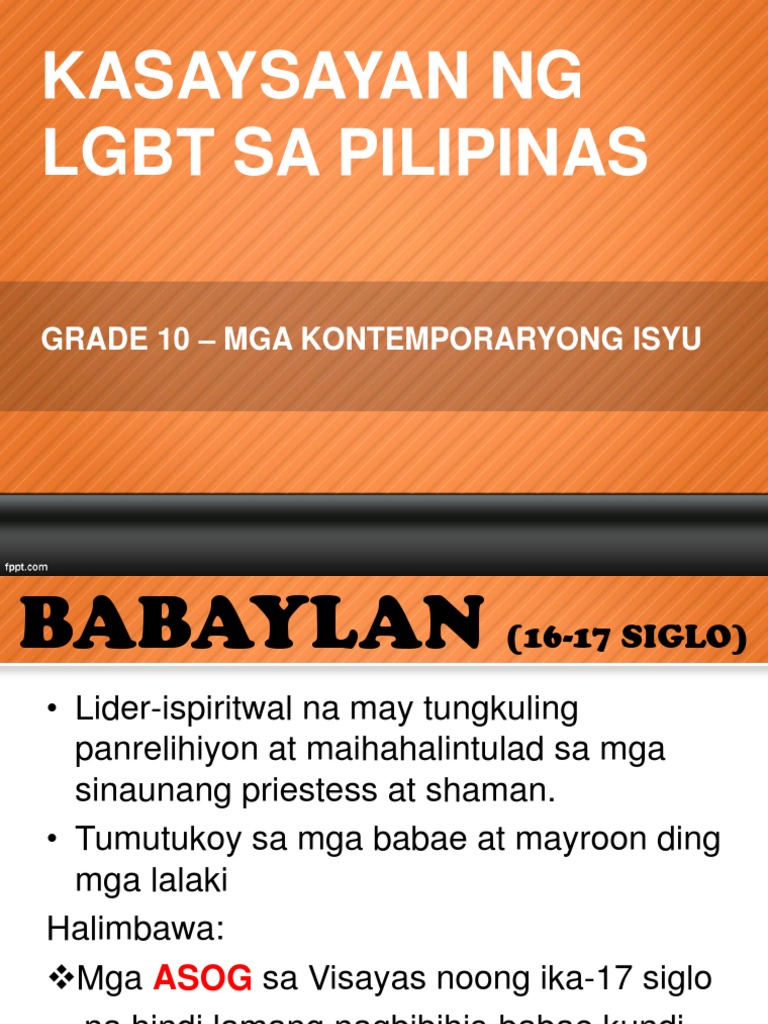 Habang sila ay tinatanggap at iginagalang sa lipunang pre-kolonyal para sa mga Espanyol ang mga babaylan ay hindi. 90 DEKADA 90 MILLINEAL 2K 12. Isa sa mga isyu sa LGBT sa Pilipinas ay naguugat sa panahong pre-kolonyal at panahon ng pananakop ng Espanya.