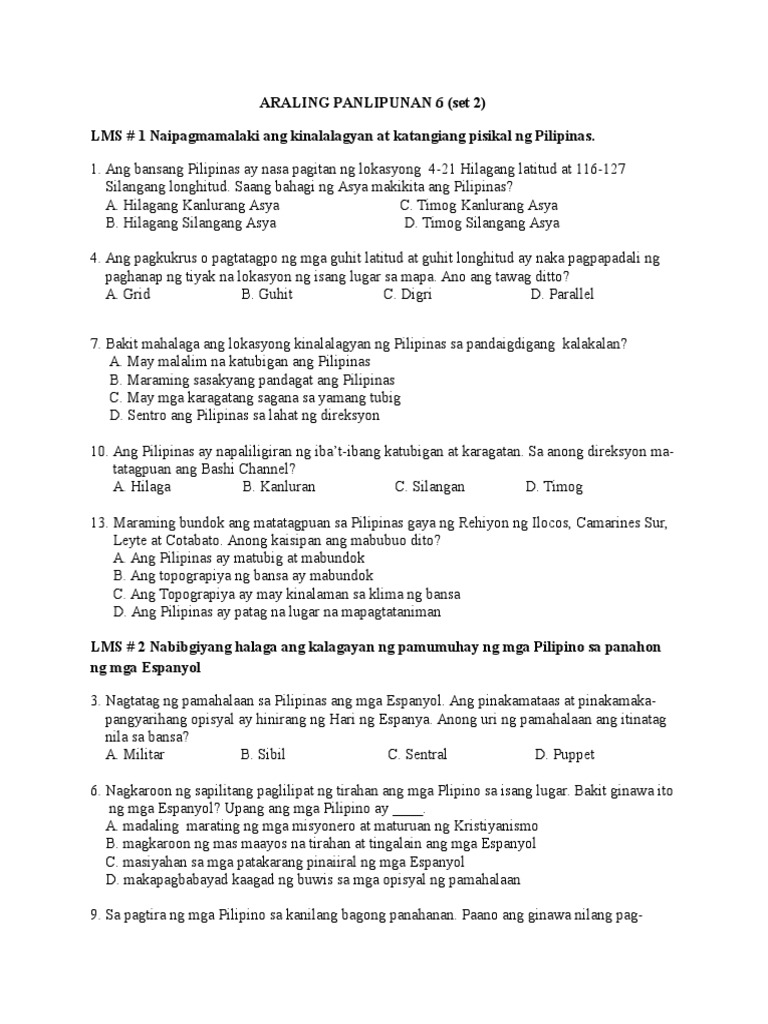 Araling Panlipunan 6 Grade 6 1st Quarter Week 1 Day 1